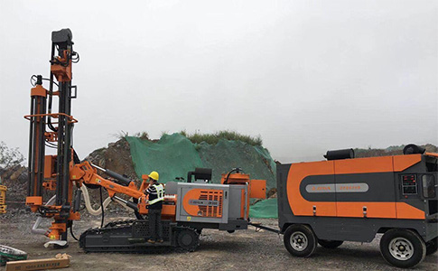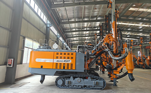 DTH drilling rig (Down-the-hole drilling rig) is a submerged hole drilling rig, whose core operating principle is to install a submerged hammer at the bottom of the drilling column, and to achieve rock-breaking drilling through the synergistic action of the three elements of ‘drilling pressure, rotation, and air pressure’. When the column rotates slowly, the hammer is driven by compressed air, and the impact force generated by the reciprocating piston continuously strikes the rock, forming a highly efficient rock-breaking capacity in conjunction with the rotating movement. This technological breakthrough allows the contractor to seamlessly switch from earth drilling to rock drilling scenarios without the need to replace the equipment, simply by adding compressors and hammers, which significantly improves operational efficiency.