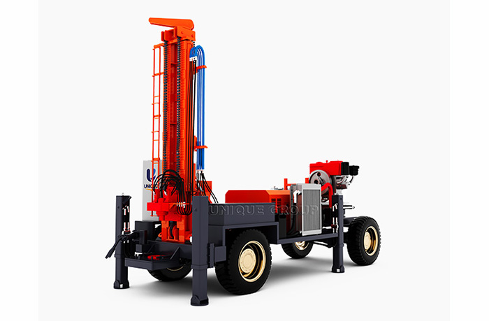 Wheel-type water well drilling rig is a kind of specialized drilling equipment with tires as the walking device, which is mainly used in the fields of groundwater mining, geological exploration, engineering survey and so on. Its core function is to penetrate the surface rock and soil layers through rotary or percussive drilling technology to form a well hole that meets the requirements. The wheel-type design gives it high mobility and quick transfer capability, and it is suitable for operation scenarios with flat terrain and convenient traffic.